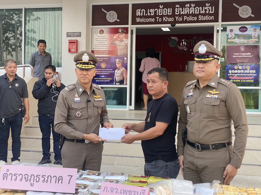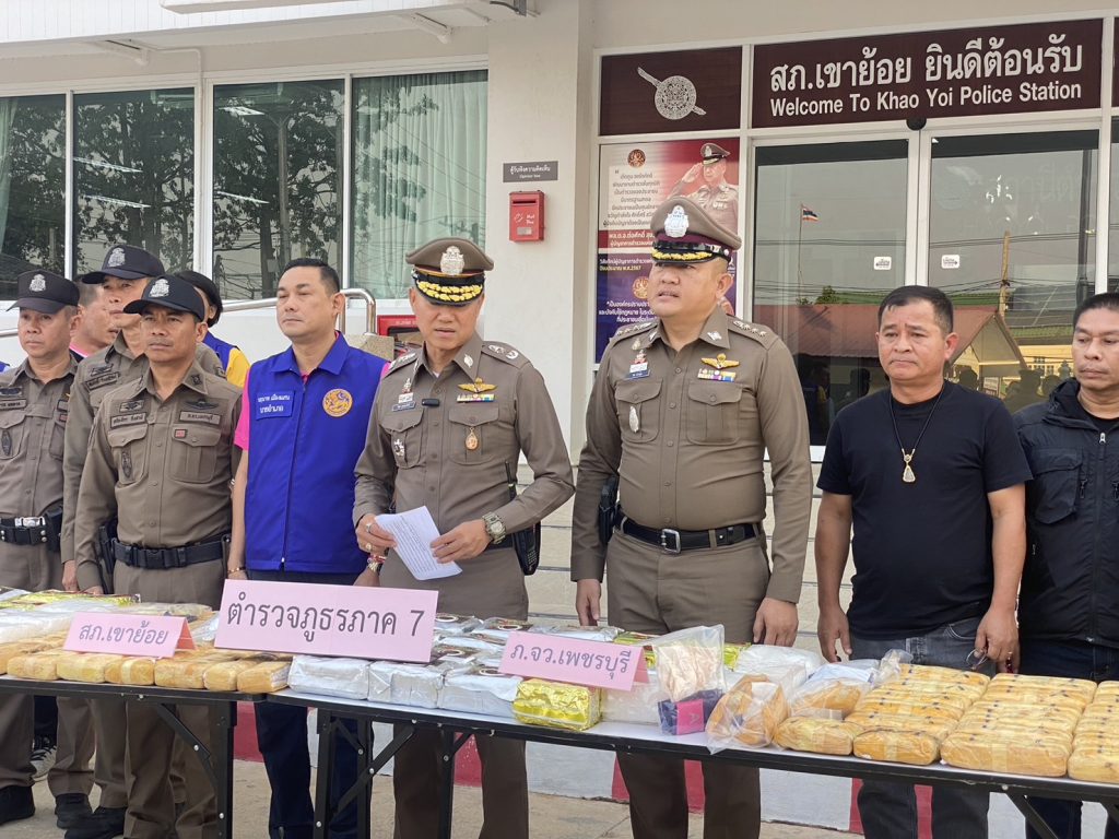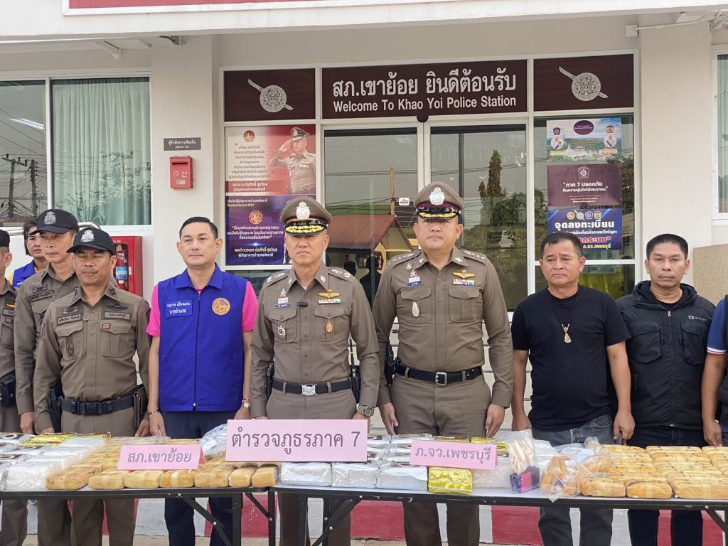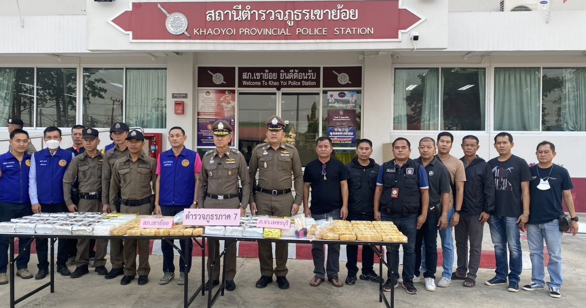 วันที่ 13 ก.พ.2567 เวลา 17.00 น. 🔸พล.ต.ต.กิตติ สุขสมภักดิ์ ผบก.ภ.จว.เพชรบุรี พ.ต.อ.ธิป เข่งคุ้ม ผกก.สภ.เขาย้อย นายนฤนาท เมืองแสน นายอำเภอเขาย้อย และเจ้าหน้าที่ตำรวจฝ่ายสืบสวนฯ ,เจ้าหน้าที่ฝ่ายปกครอง ได้ร่วมกันแถลงข่าวจับกุมยาบ้า 258,000 เม็ด ,ยาไอซ์ 50 กก. โดยมีรายละเอียดดังนี้