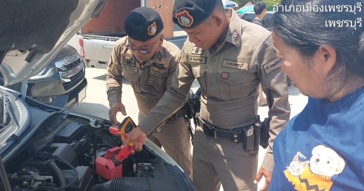 ตำรวจ สภ.หาดเจ้าสำราญ ช่วยเหลือรถยนต์สตาร์ทไม่ติด บริเวณ หน้าชายหาดเจ้าสำราญ