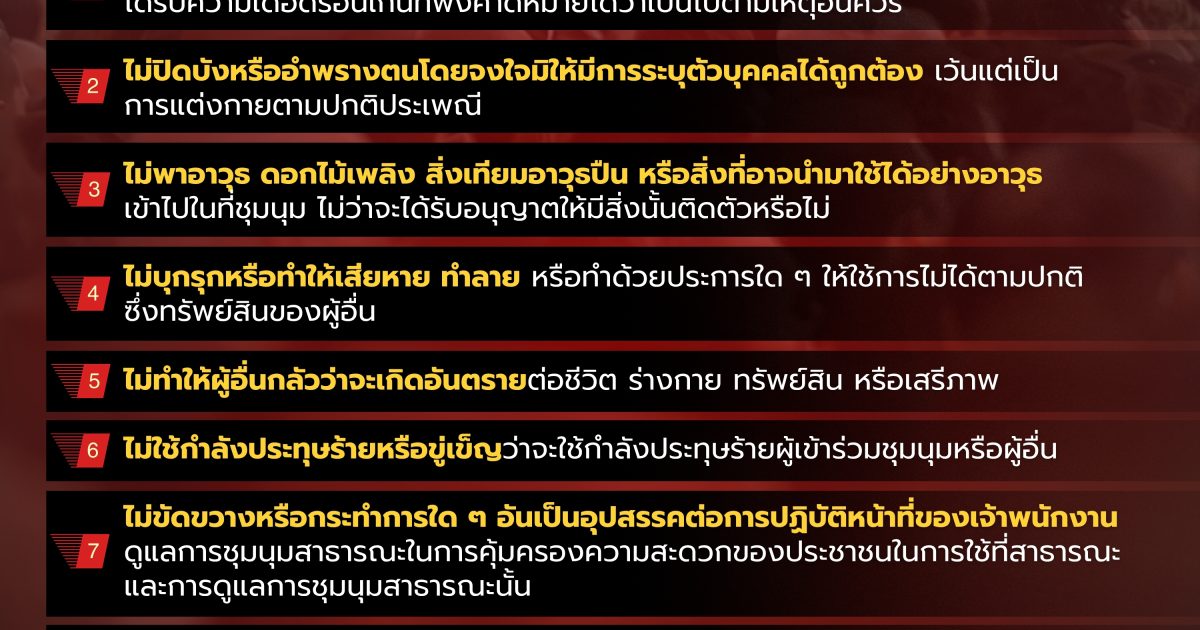 สำนักงานตำรวจแห่งชาติ ขอประชาสัมพันธ์ หน้าที่ของผู้ชุมนุมในการชุมนุมสาธารณะ พึงปฏิบัติเพื่อร่วมกันบริหารจัดการการชุมนุมสาธารณะให้เป็นไปด้วยความสงบเรียบร้อย ไม่ละเมิดสิทธิเสรีภาพของผู้อื่น