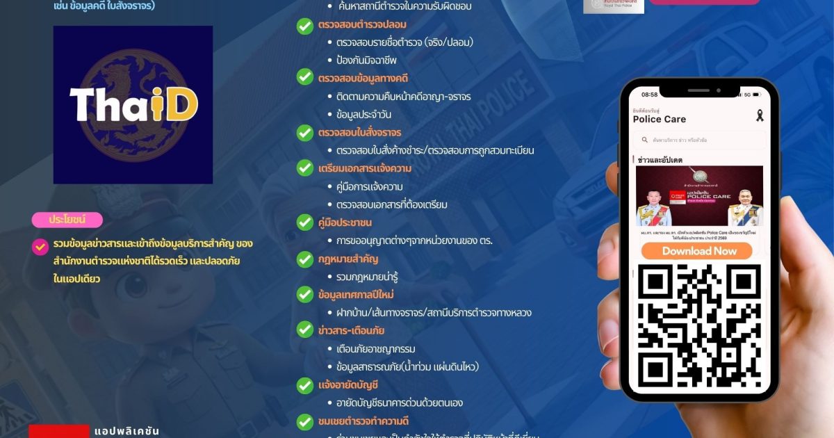 ด้วย พล.ต.อ. กิตติ์รัฐ พันธุ์เพ็ชร์ ผบ.ตร. และ พล.ต.อ.นิรันดร เหลือมศรี รอง ผบ.ตร.(กม) มอบหมายให้ กม. และ ศทก. ดำเนินการจัดทำ “แอปพลิเคชัน ตำรวจห่วงใยประชาชน (POLICE CARE)” เพื่อเป็นช่องทางกลางสำหรับประชาชนในการเข้าถึงข้อมูลกฎหมาย คู่มือประชาชน การเตรียมเอกสารแจ้งความ การตรวจสอบข้อมูลบริการ และข่าวสารจาก ตร. อย่างครบวงจร