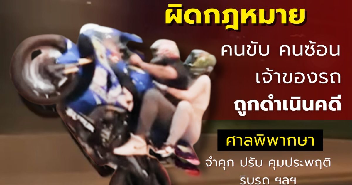 ผู้ขับขี่รถจักรยานยนต์ในลักษณะยกล้อ 3 คน คือ นายธีระพงษ์ฯ, นายทศพรฯ และนายวันชัยฯ มีความผิดฐาน