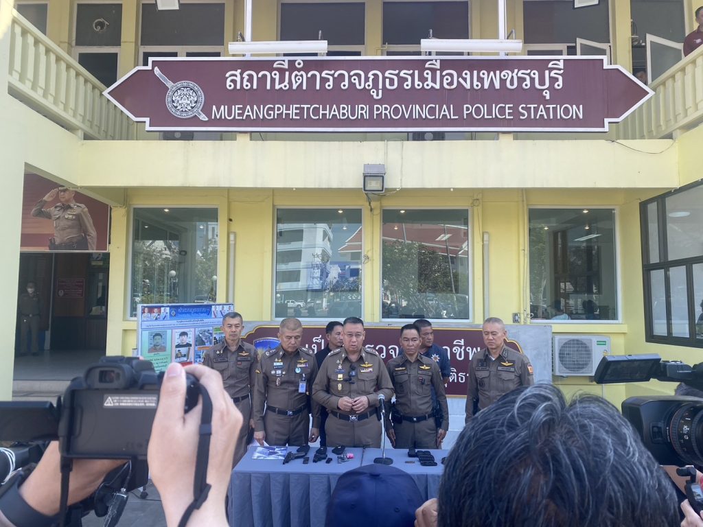 พล.ต.ท.นัยวัฒน์ ผะเดิมชิต ผบช.ภ.7 แถลงข่าวการจับกุมผู้ต้องหาคดีฆ่าผู้อื่นโดยเจตนา ท้องพื้นที่ สภ.เมืองเพชรบุรี