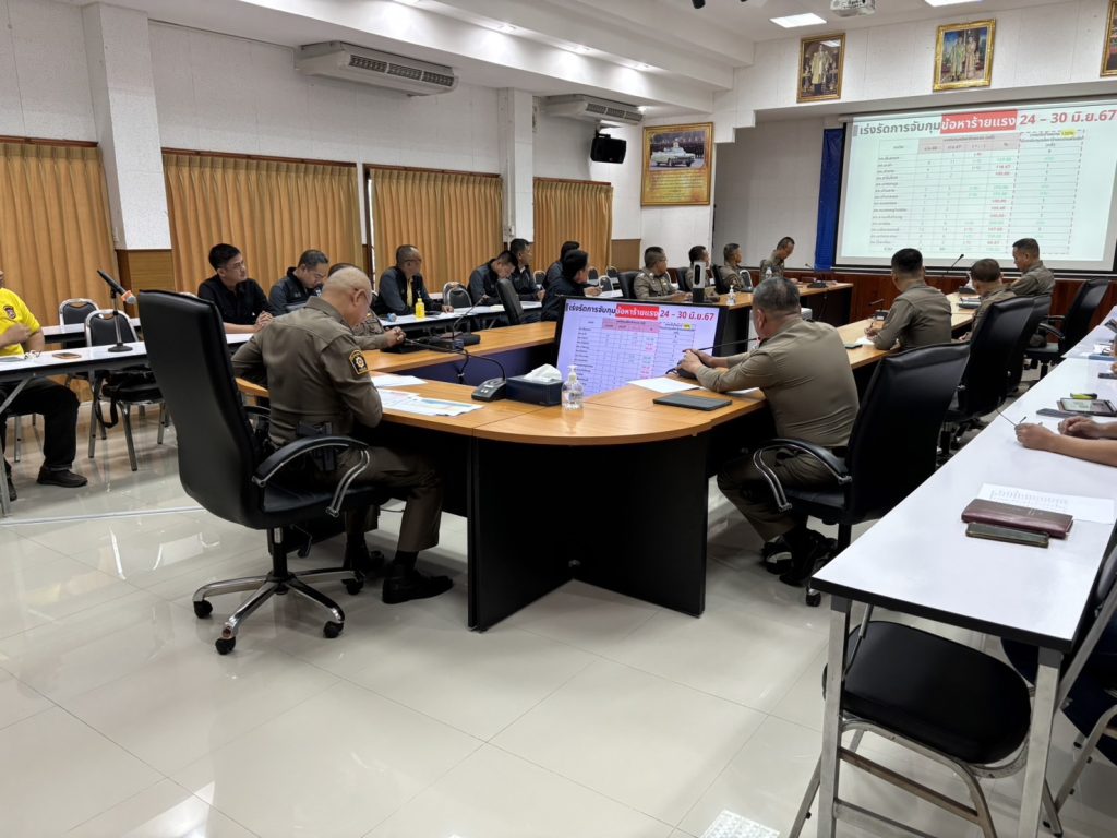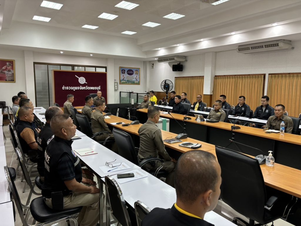 วันที่ 24 มิ.ย.67 เวลา 11.00 น. พล.ต.ต.กิตติ สุขสมภักดิ์ ผบก.ภ.จว.เพชรบุรี พ.ต.อ.กานต์ ธรรมเกษม รอง ผบก.ภ.จว.เพชรบุรี พ.ต.อ.สุพมาส บัวลาด รอง ผบก.ภ.จว.เพชรบุรี พร้อมด้วย ผกก.สส.ภ.จวฯ ,ผกก.สภ. ,หน.สภ. ,รอง ผกก.สส.ฯ,หน.งานยาเสพติด,สว.สส.ฯ และเจ้าหน้าที่ผู้เกี่ยวข้อง ร่วมประชุมเร่งรัดผลการดำเนินงานด้านยาเสพติด,การจับกุมอาวุธปืน อาวุธสงคราม เครื่องกระสุนปืนและวัตถุระเบิด,การพนันทายผลฟุตบอลยูโร และการดำเนินการจัดทำระบบบันทึกแผนการประทุษกรรมของ ศทก. (CRIMES) ณ ห้องประชุม 1 ภ.จว.เพชรบุรี
