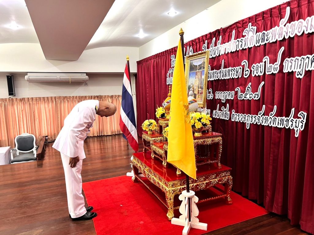 และ ข้าราชการตำรวจในสังกัด กก.สืบสวนฯ, กลุ่มงานสอบสวนฯ และฝ่ายอำนวยการ ภ.จว.เพชรบุรี ร่วมพิธีถวายสัตย์ปฏิญาณการเป็นข้าราชการที่ดีและพลังของแผ่นดินประจำปี 2567 โดยข้าราชการตำรวจ ภ.จว.เพชรบุรี จะประพฤติปฏิบัติตนเป็นข้าราชการที่ดีและพลังของแผ่นดิน มีความชื่อสัตย์สุจริต เจริญรอยตามเบื้องพระยุคลบาท มุ่งมั่นแน่วแน่แก้ไขปัญหาของประเทศชาติและประชาชน สร้างสรรค์คุณประโยชน์แก่แผ่นดิน และดำเนินชีวิตโดยยึดมั่นในหลักธรรมคำสอนแห่งศาสนา ตามแนวทางพระบรมราโชวาทตลอดไป พร้อมทั้ง ได้ร่วมลงนามถวายพระพร พระบาทสมเด็จพระเจ้าอยู่หัว เนื่องในโอกาสวันเฉลิมพระชนมพรรษา วันที่ 28 กรกฎาคม 2567 ณ ห้องประชุมแม่บุญรวมเสนาดิสัย ภ.จว.เพชรบุรี