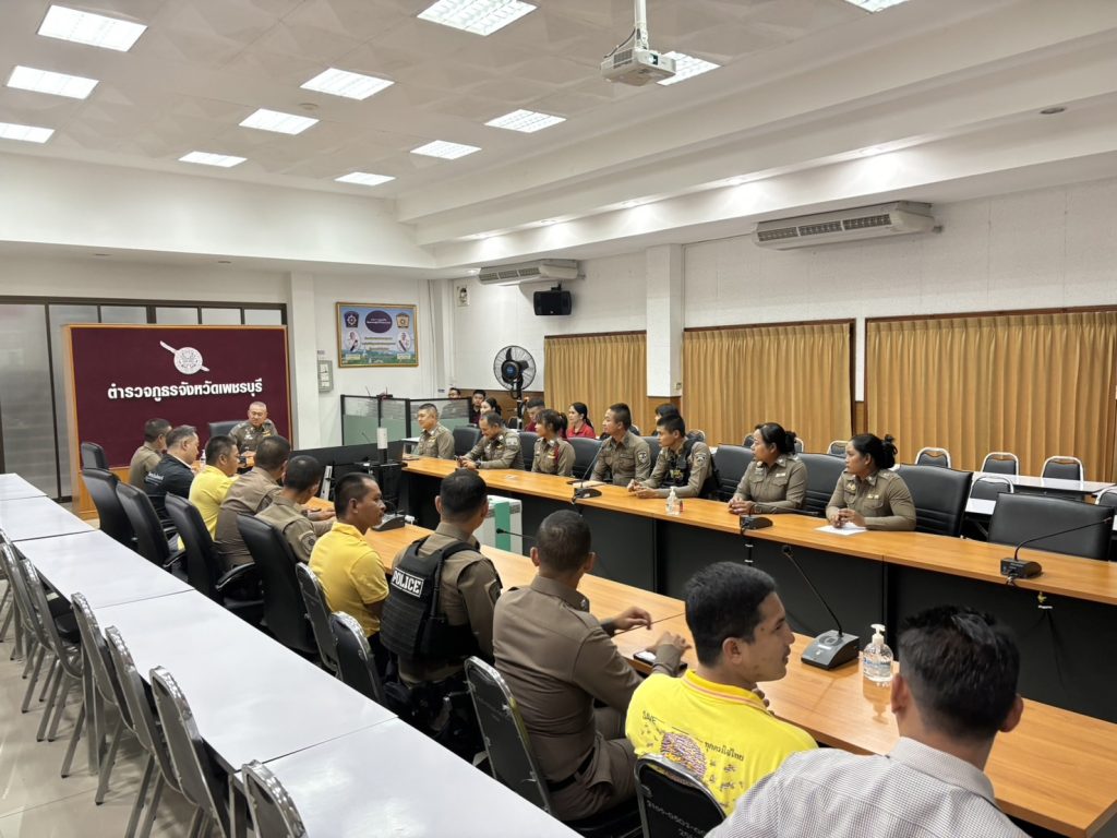 วันที่ 26 ก.ค.67 เวลา 13.30 น. พล.ต.ต.กิตติ สุขสมภักดิ์ ผบก.ภ.จว.เพชรบุรี พ.ต.อ.ธงชัย เนตรสขาวัฒน์ รอง ผบก.ภ.จว.เพชรบุรี พร้อมด้วย กำลังพล Local CAT ในสังกัด สภ.เมืองเพชรบุรี,ฝอ.ภ.จว.เพชรบุรี ,เจ้าหน้าที่ที่เกี่ยวข้อง และ กำลังพล Local CAT ในสังกัด เฝ้าฟัง ณ ที่ตั้ง ประชุมเตรียมความพร้อมในการรักษาความปลอดภัย อำนวยความสะดวกการจราจร และการบริการประชาชน การจัดงานเฉลิมพระเกียรติ พระบาทสมเด็จพระเจ้าอยู่หัว เนื่องในโอกาสมหามงคลเฉลิมพระชนมพรรษา 6 รอบ 28 กรกฎาคม 2567 ณ มณฑลพิธีท้องสนามหลวง ณ ห้องประชุม 1 ภ.จว.เพชรบุรี