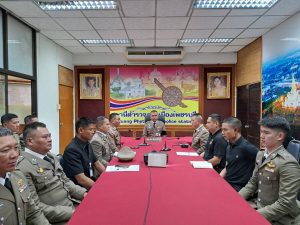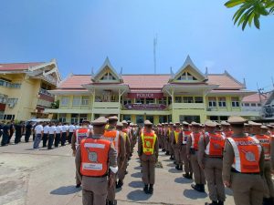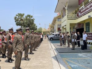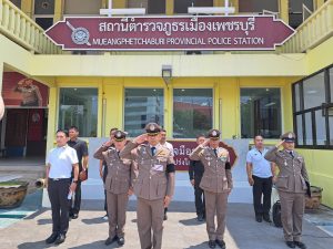 วันที่ 26 มีนาคม 2567 เวลา 13.00 น. พ.ต.อ.โกศล ยามา รอง ผบก.ภ.จว.เพชรบุรี พ.ต.อ.ธานินทร์ ฉัตรเจริญพร รอง ผบก.ภ.จว.เพชรบุรี พ.ต.อ.วันชัย ขาวรัมย์ ผกก.สภ.เมืองเพชรบุรี พ.ต.ท.สิทธิพร ฉ่ำมะนา รอง ผกก.ป.สภ.เมืองเพชรบุรี พ.ต.ท.พิเชษฐ์ ชัยมาลา รอง ผกก.สส.สภ.เมืองเพชรบุรี พ.ต.ท.ธเนตร หนูกลัด สว.สส.สภ.เมืองเพชรบุรี พ.ต.ต.กดชา บันเทิงจิต สวป.(ชส.)สภ.เมืองเพชรบุรี พ.ต.ต.วีรยุทธ เตชะเดช สว.จร.สภ.เมืองเพชรบุรี เรียกแถว ข้าราชการตำรวจ สภ.เมืองเพชรบุรี จำนวนยอด สัญญาบัตร 84 นาย ประทวน 158 นาย รวมจำนวนยอดทั้งสิ้น 242 นาย ประชุมชี้แจงข้อปฏิบัติ ตรวจจำนวนความพร้อม เครื่องแต่งกาย ทรงผม อุปกรณ์ที่ใช้ในการถวายความปลอดภัย ก่อนออกปฏิบัติหน้าที่ภารกิจถวายความปลอดภัยเส้นทางเสด็จสมเด็จพระกนิษฐาธิราชเจ้า กรมสมเด็จพระเทพรัตนราชสุดาฯ สยามบรมราชกุมารี ณ ลานหน้า สภ.เมืองเพชรบุรี