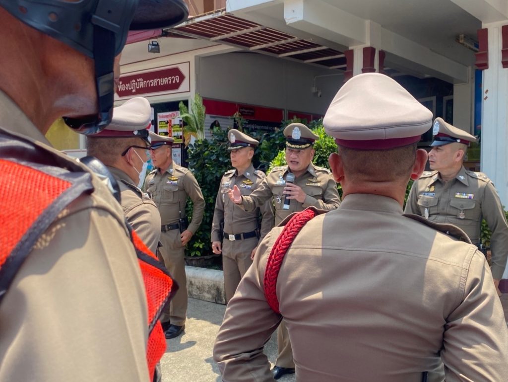วันที่ 26 มี.ค. 2567 เวลา 13.00 น. พ.ต.อ.กานต์ ธรรมเกษม รอง ผบก.ภ.จว.เพชรบุรี พ.ต.อ.โชคชัย เนียลเซ็น ผกก.สภ.ท่ายาง พร้อมด้วย พ.ต.ท.นำพล พวงไพโรจน์ รอง ผกก.ป.สภ.ท่ายาง พ.ต.ท.อรรถพงษ์ นกขุนทอง รอง ผกก.สส.สภ.ท่ายาง พ.ต.ท.ประทวน ทองภักดี รอง ผกก.(สอบสวน)สภ.ท่ายาง พ.ต.ท.บุญธรรม ขาวปลั่ง สวป.สภ.ท่ายาง พ.ต.ท.ทวีเดช เทียนทอง สว.สส.สภ.ท่ายาง พ.ต.ต.ชำนาญ ชำนาญเรือ สว.อก.สภ.ท่ายาง พ.ต.ต.ธรรมนาวิน ภูโต สว.(ชส.)สภ.ท่ายาง เรียกแถวข้าราชการตำรวจ ผู้มีหน้าที่ปฏิบัติหน้าที่ถวายความปลอดภัย และอำนวยความสะดวกด้านการจราจร ได้ประชุมชี้แจงข้อปฏิบัติ และตรวจความพร้อม – ตรวจจำนวน – การแต่งกาย – อุปกรณ์การถวายความปลอดภัย ภารกิจเดโชชัย 5 ด้วย สมเด็จพระกนิษฐาธิราชเจ้า กรมสมเด็จพระเทพรัตนราชสุดา เจ้าฟ้ามหาจักรีสิรินธร มหาวชิราลงกรณวรราชภักดี สิริกิจการิณีพีรยพัฒน รัฐสีมาคุณากรปิยชาติ สยามบรมราชกุมารี เสด็จพระราชดำเนินมาทรงปฏิบัติพระราชกรณียกิจ ในพื้นที่จังหวัดเพชรบุรี ในวันอังคารที่ 26 มีนาคม 2567 ยอดกำลังพล ที่ใช้ในการปฏิบัติภารกิจ นายตำรวจควบคุม 7 นาย