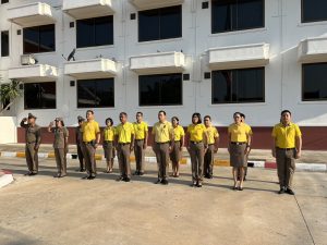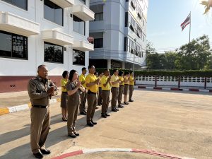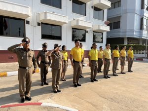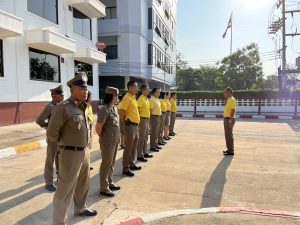 วันที่ 18 มี.ค.2567 เวลา 08.00 น. ตำรวจภูธรจังหวัดเพชรบุรี โดยข้าราชการตำรวจ ฝอ.ภ.จว.เพชรบุรี เข้าแถวเคารพธงชาติ และชี้แจงข้อราชการ ณ หน้าอาคารที่ทำการ ภ.จว.เพชรบุรี และใส่เสื้อสีเหลืองทุกวันจันทร์ เนื่องในโอกาสมหามงคลเฉลิมพระชนมพรรษา พระบาทสมเด็จพระเจ้าอยู่หัวทรงเจริญพระชนมพรรษา 6 รอบ 72 พรรษา