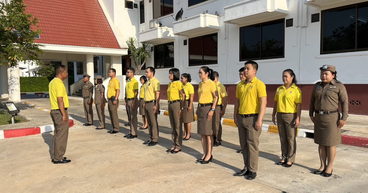 วันที่ 18 มี.ค.2567 เวลา 08.00 น. ตำรวจภูธรจังหวัดเพชรบุรี โดยข้าราชการตำรวจ ฝอ.ภ.จว.เพชรบุรี เข้าแถวเคารพธงชาติ และชี้แจงข้อราชการ ณ หน้าอาคารที่ทำการ ภ.จว.เพชรบุรี และใส่เสื้อสีเหลืองทุกวันจันทร์ เนื่องในโอกาสมหามงคลเฉลิมพระชนมพรรษา พระบาทสมเด็จพระเจ้าอยู่หัวทรงเจริญพระชนมพรรษา 6 รอบ 72 พรรษา