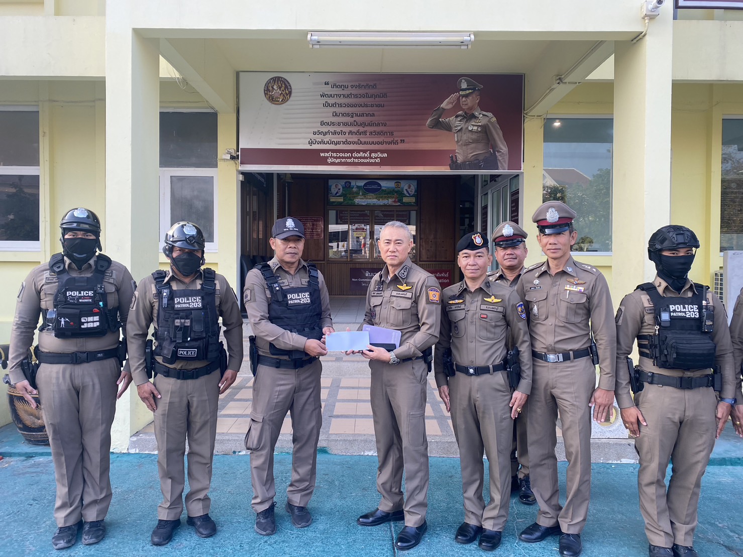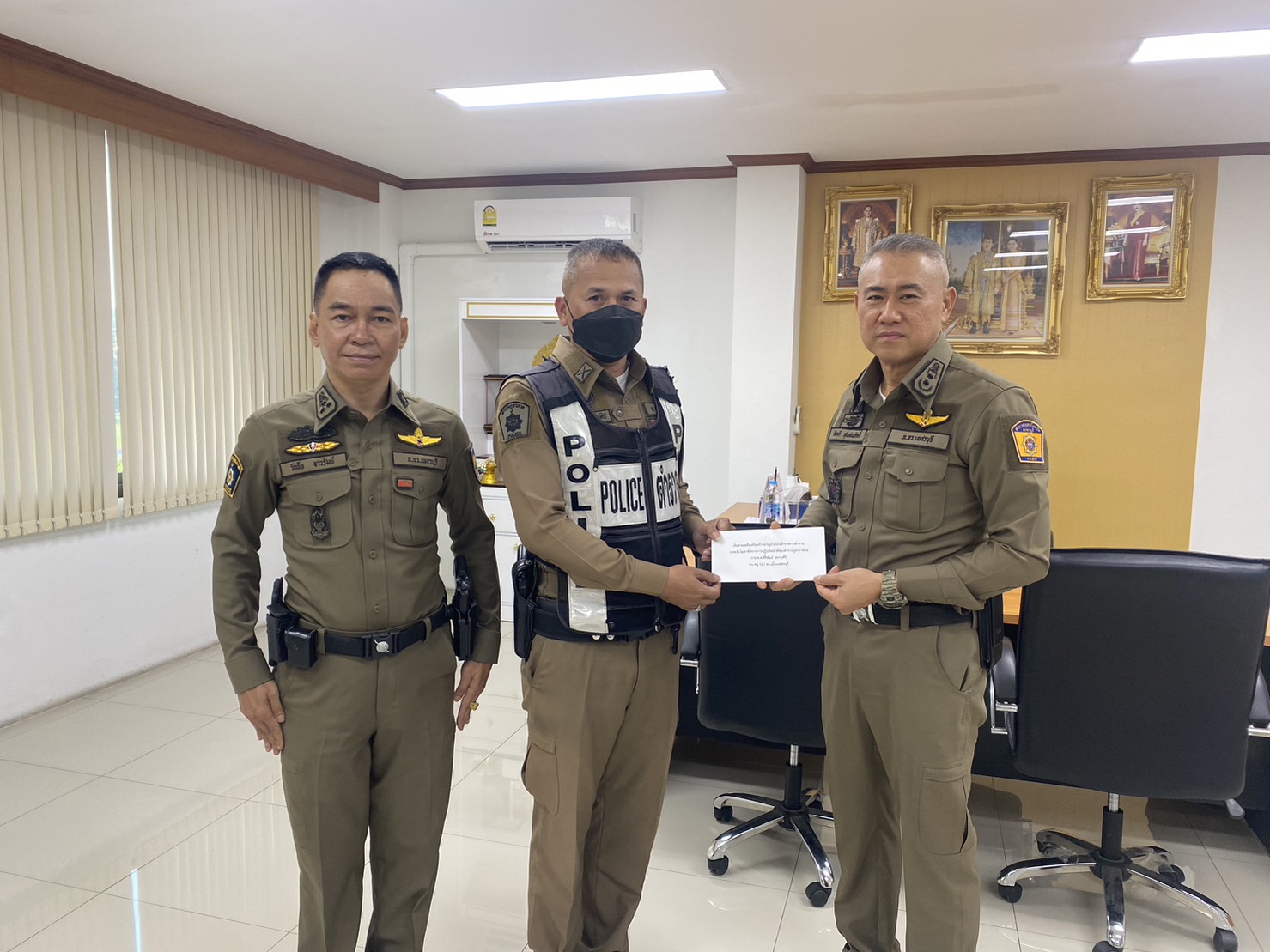 พล.ต.ต.กิตติ สุขสมภักดิ์ ผบก.ภ.จว.เพชรบุรี มอบเงินรางวัล ให้แก่เจ้าหน้าที่ตำรวจชุดก้าวสกัดจับ
