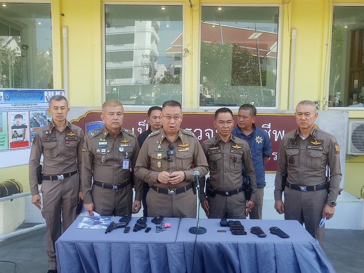 พล.ต.ท.นัยวัฒน์ ผะเดิมชิต ผบช.ภ.7 แถลงข่าวการจับกุมผู้ต้องหาคดีฆ่าผู้อื่นโดยเจตนา ท้องพื้นที่ สภ.เมืองเพชรบุรี