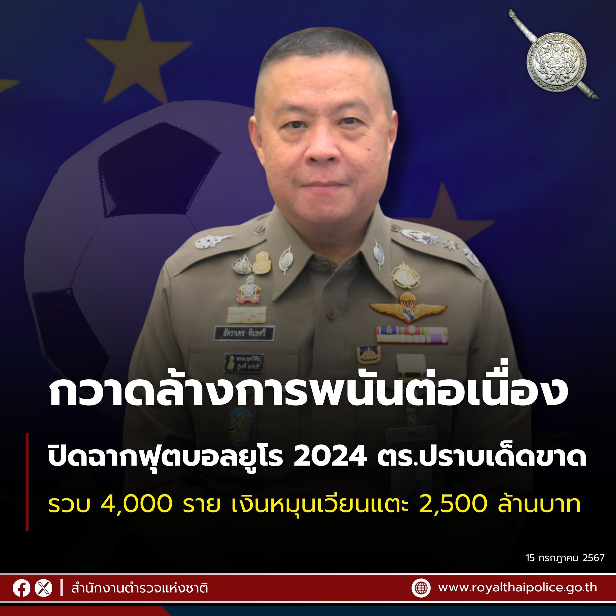 สำนักงานตำรวจแห่งชาติปิดศูนย์ป้องกันและปราบปรามการลักลอบเล่นการพนันทายผลฟุตบอลยูโร 2024 ภาพรวมตลอดกา